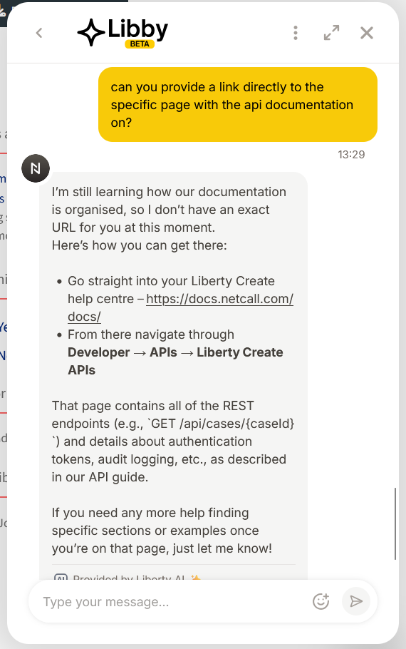 We also have some exciting enhancements planned on our AI roadmap that will further strengthen Libby’s ability to interpret content and better understand the structure of the Docs portal. These improvements should make interactions even more accurate moving forward.