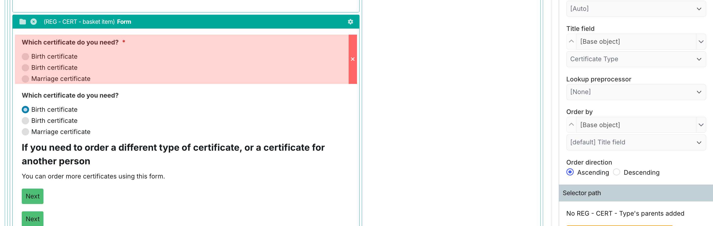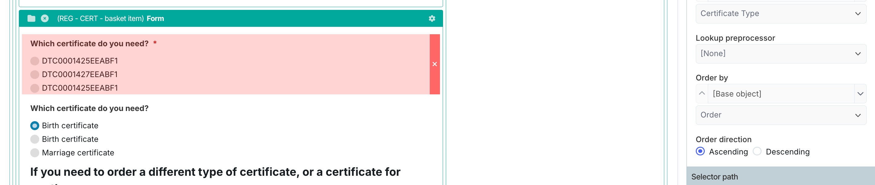 It’s selecting a certificate type from another object (as it requires additional data like price), so not getting the data from a regular choice datatype