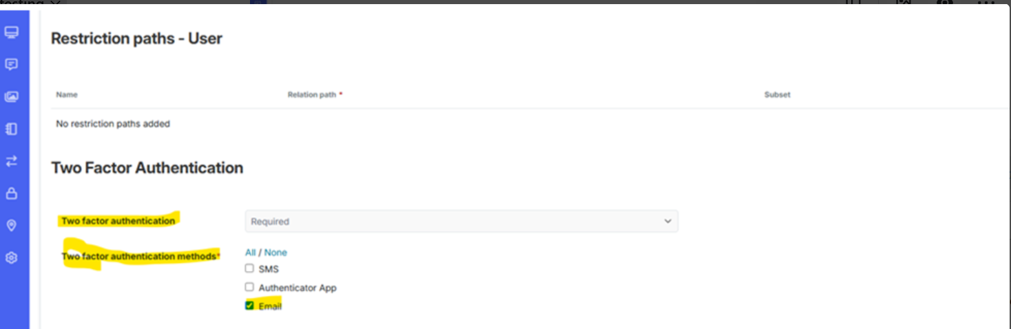 It says ‘As specified by each user object’. We have enabled 2FA under the ‘User’ object. We want to enable 2FA only for Councillor portal users. We have a separate user object for Councillor portal users. But if we enable 2FA for Councillor portal user object it doesn’t seem to work. So we have enabled the 2FA for ‘User’ object and selected ‘optional’. This way 2FA option is available to all users but they can select whether to enable it.